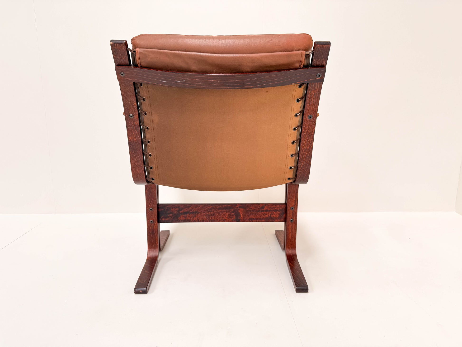 This iconic lounge chair, designed by Ingmar Relling for Westnofa, features a beautiful laminated rosewood frame paired with soft brown leather upholstery. The unique laminated rosewood construction gives the piece a distinctive, elegant look with its rich wood grain. The chair’s comfortable design combines mid-century modern style with high-quality craftsmanship, making it a perfect addition to any vintage interior. The leather has developed a lovely patina over time, enhancing its vintage charm.