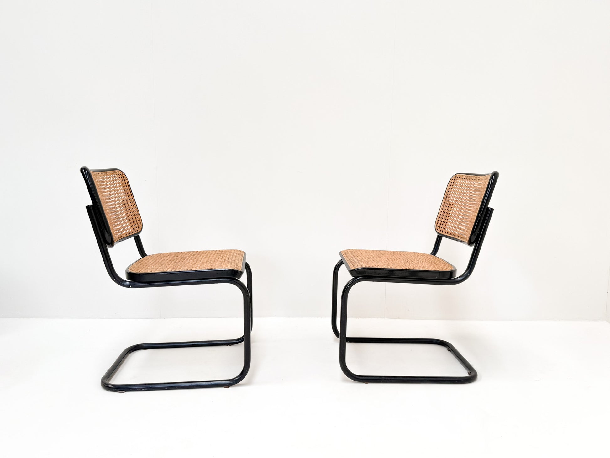Set of 4 Vintage Cesca Chairs by Marcel Breuer for Thonet, 1980s (2x B64 Armchairs, 2x B32 Side Chairs)