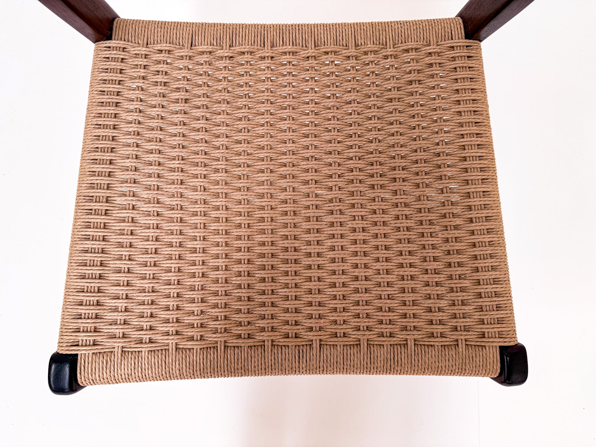 The seats have been freshly re-corded with high-quality paper cord, ensuring both comfort and durability for many years to come. The rich rosewood frames display gorgeous natural grain patterns and warm tones, making this set an eye-catching addition to any dining space.