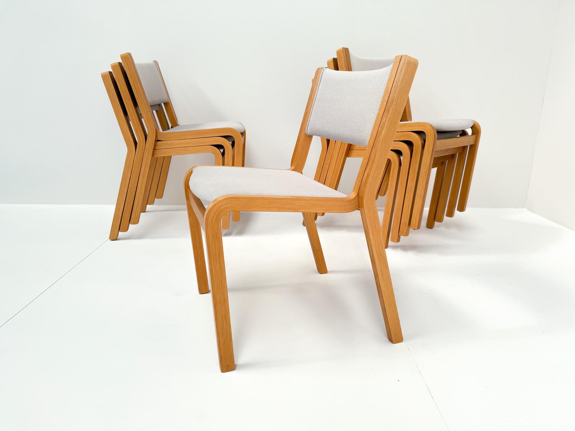 Set of 8 Danish Modern Bentwood Beech Stacking Chairs, 1970s