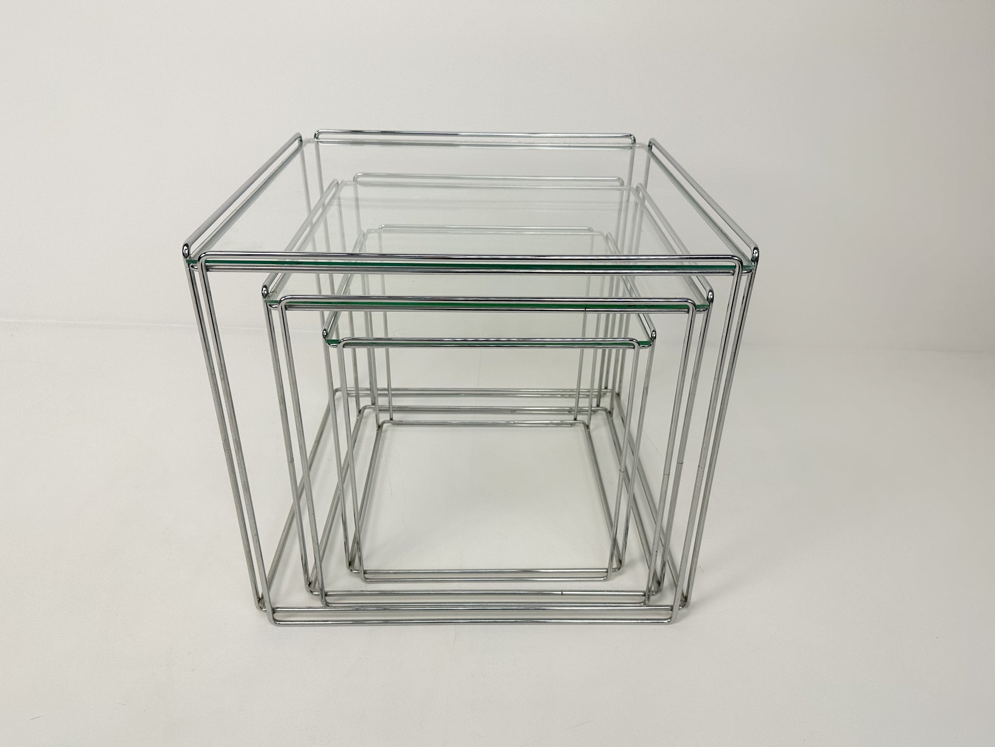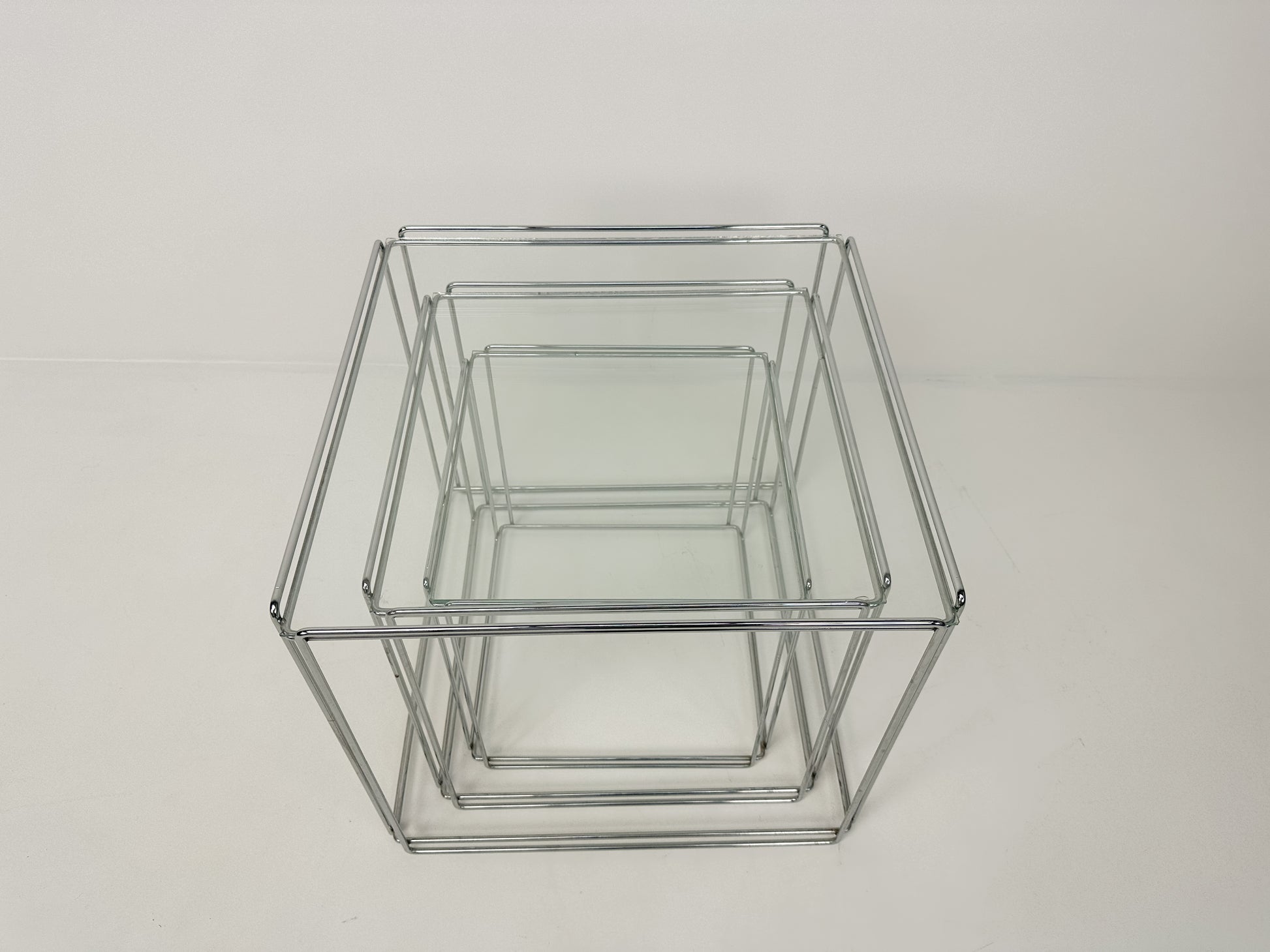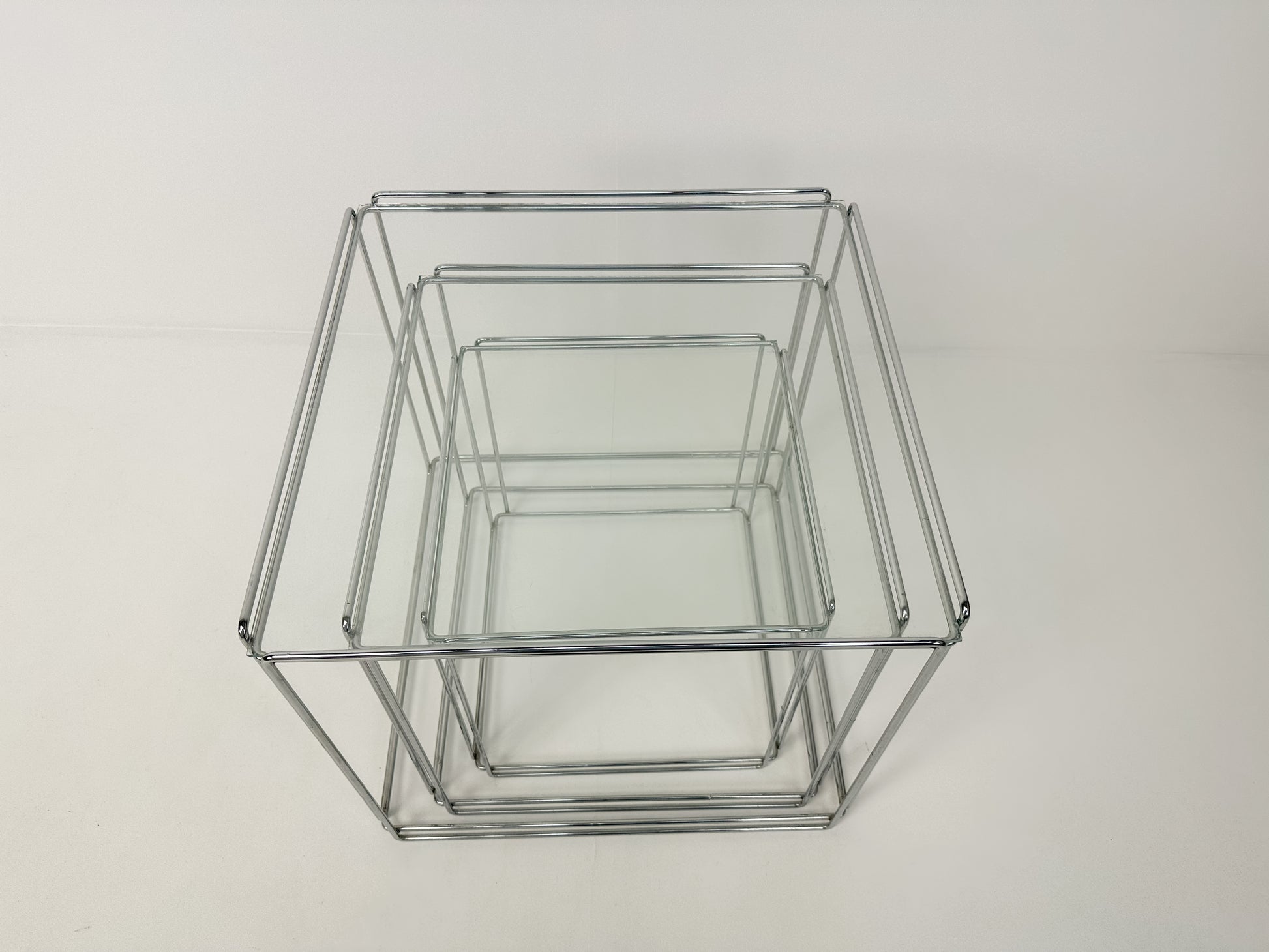 Glass & Chrome Nesting Tables, inspired by Max Sauze's iconic Isocele "Chrome Edition."