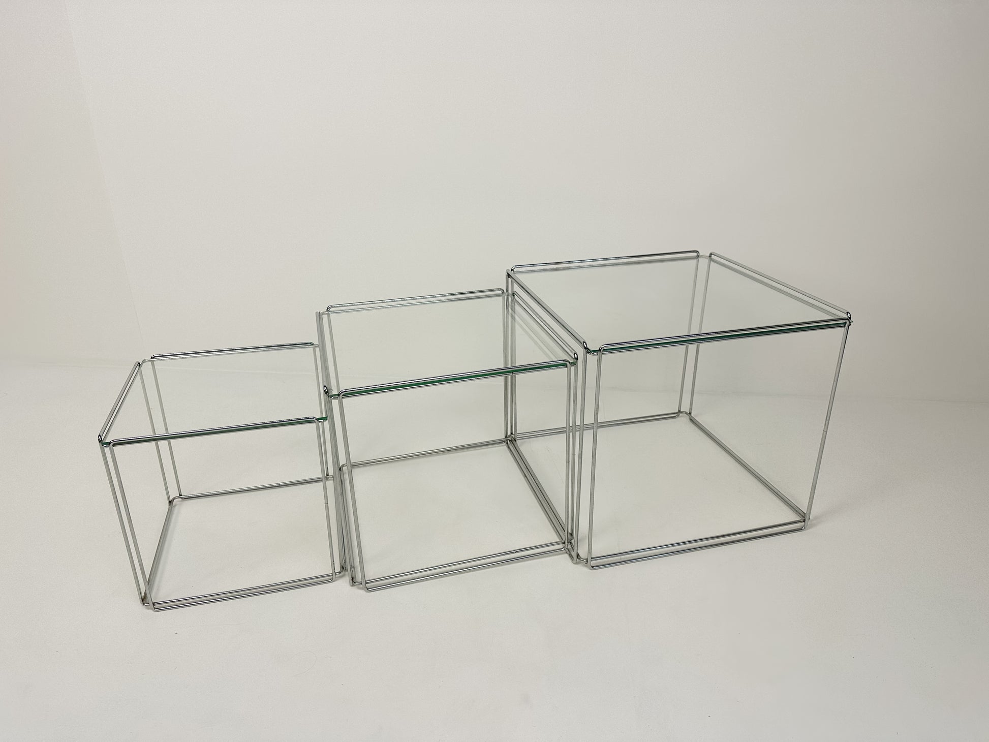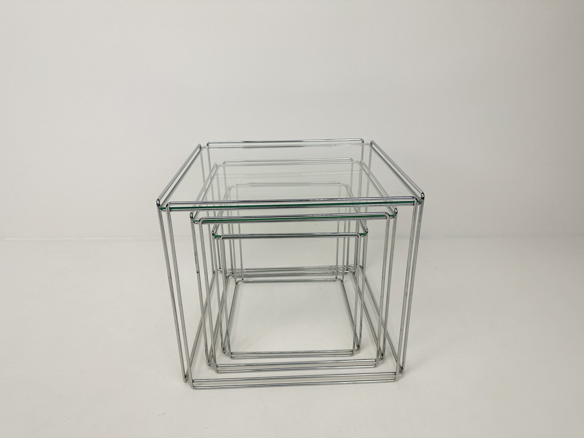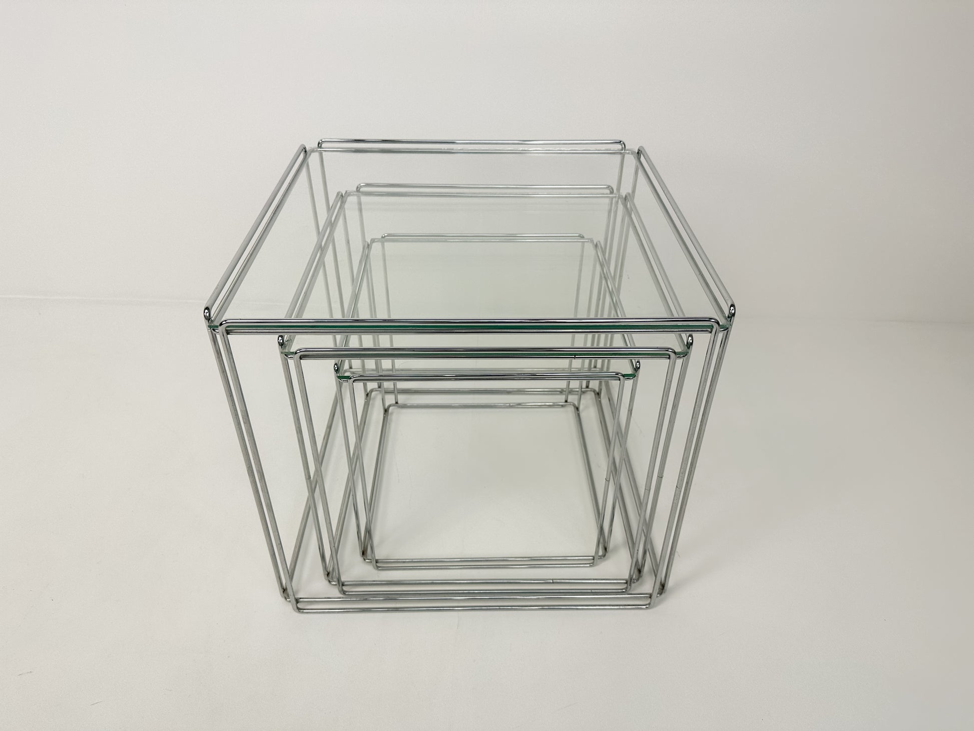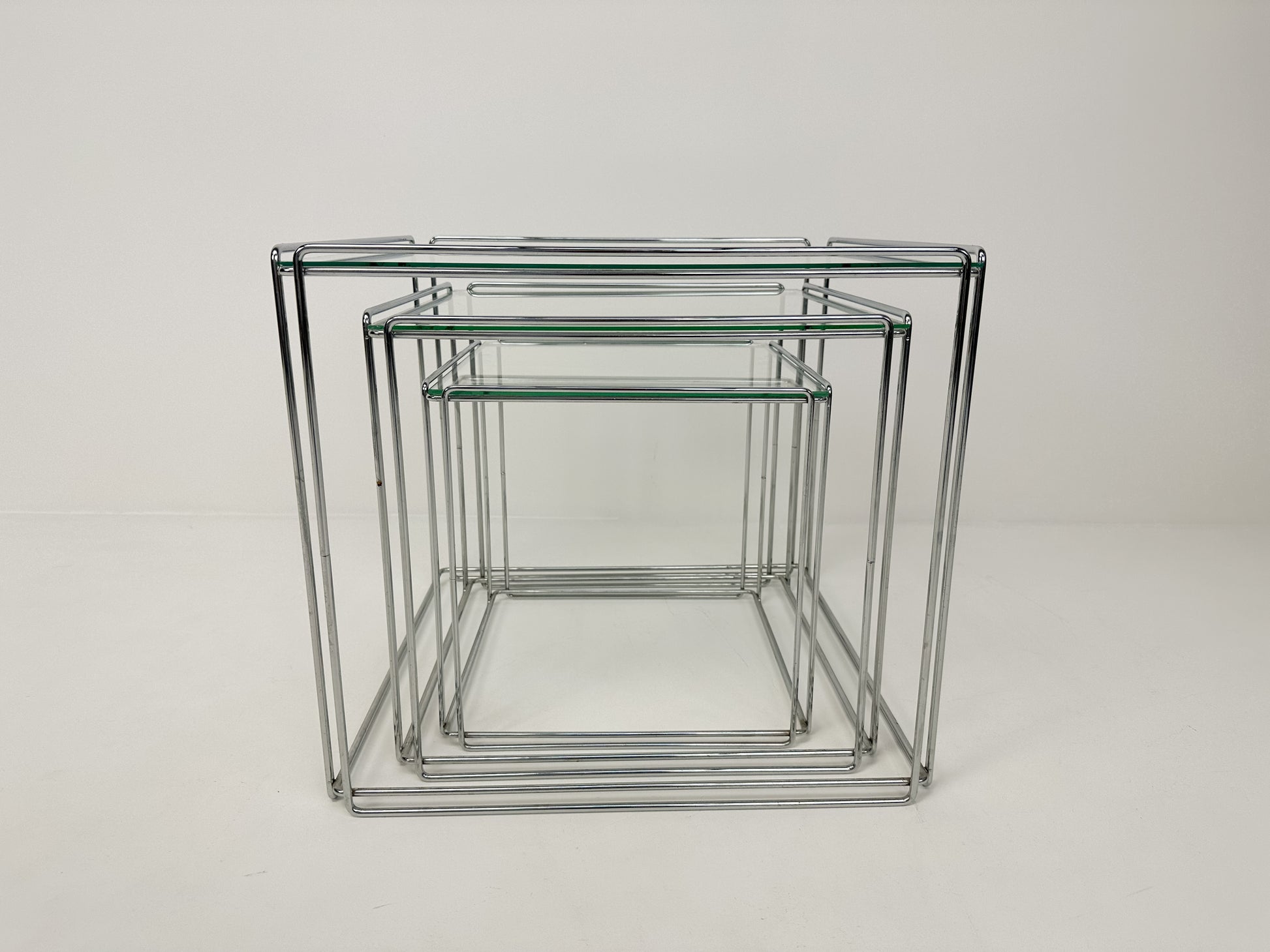 Glass & Chrome Nesting Tables, inspired by Max Sauze's iconic Isocele "Chrome Edition."