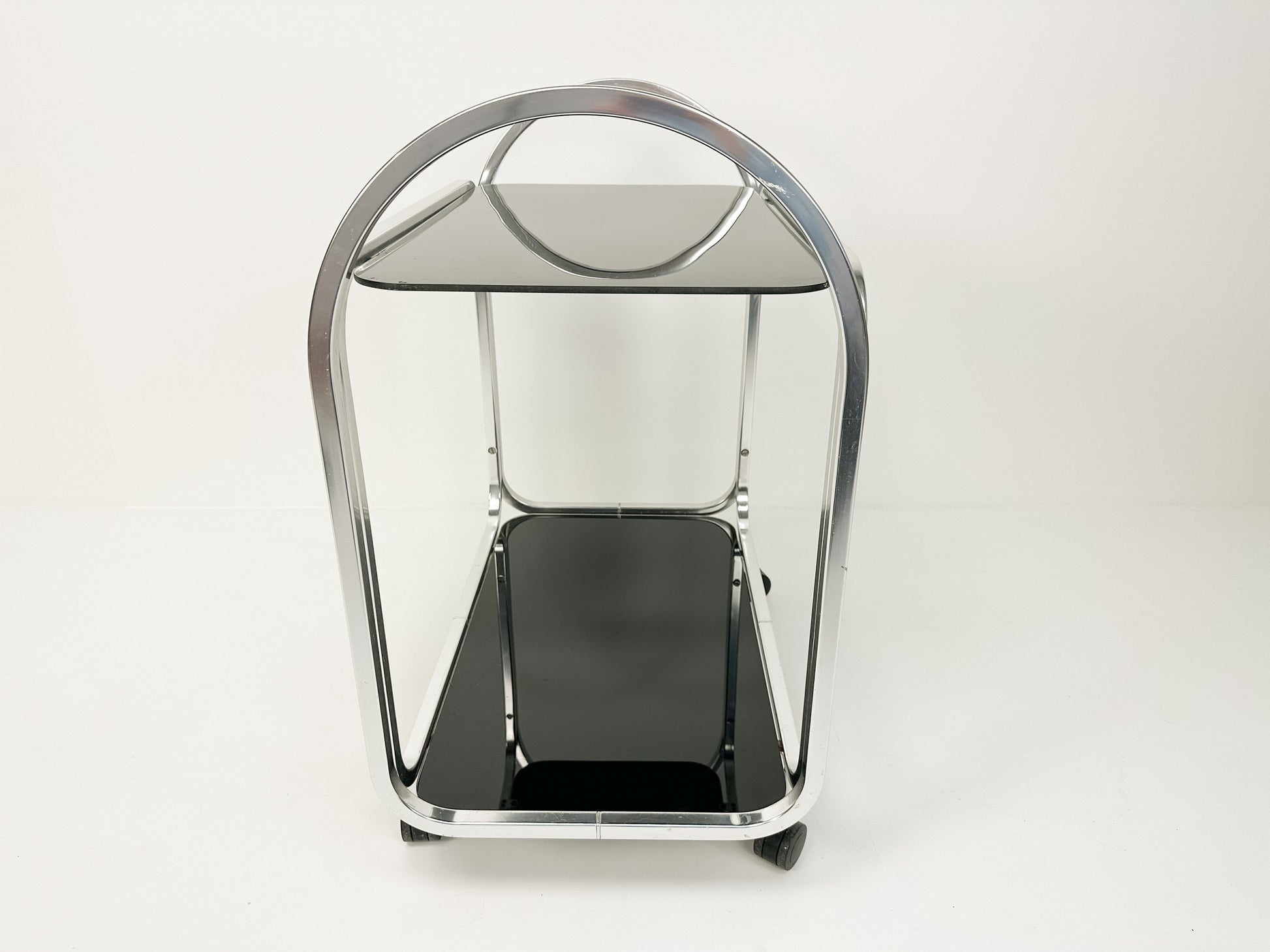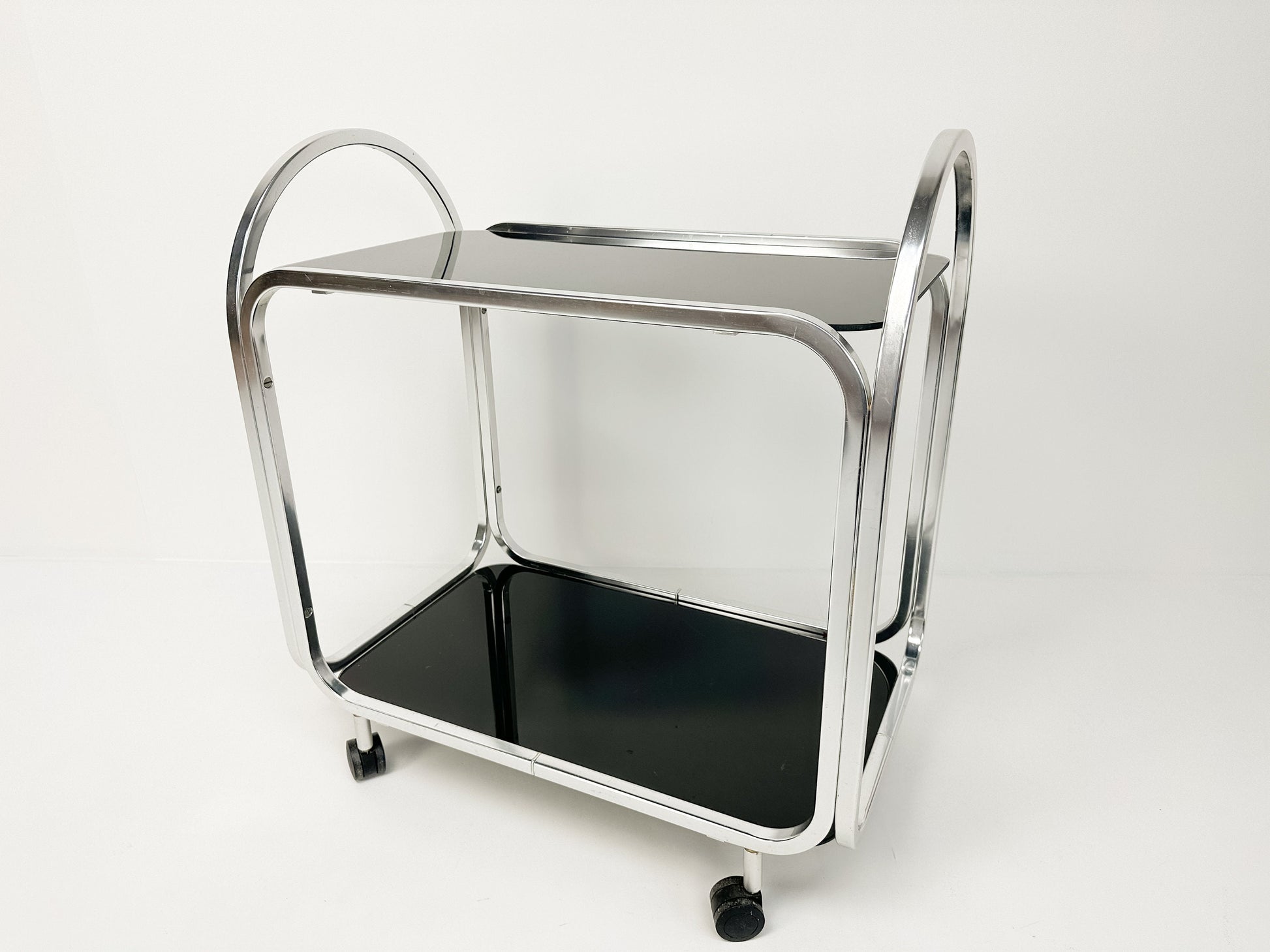 Vintage Mid-Century Bar Cart with Black Glass, 1970s