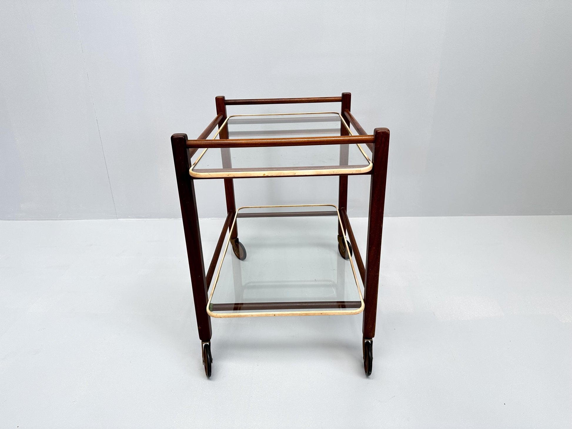 Vintage Teak Trolley with Two Glass Tops by Cees Braakman for Pastoe, 1950s
